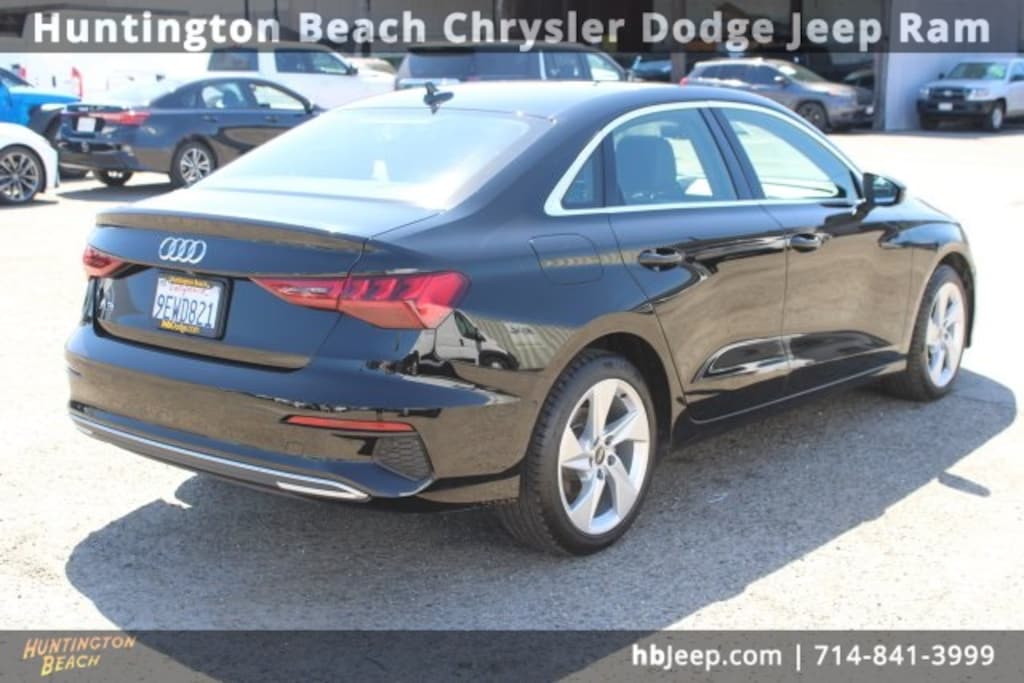 2023 Audi A3 Brilliant Black 7-Speed Automatic S tronic 2.0L 4-Cylinder TFSI BLUETOOTH WIRELESS / HANDS FREE, BACK UP CAMERA, Black/Rock Gray Stitching w/Leather Seating Surfaces, ABS brakes, Alarm System w/Motion Sensor, Alloy wheels, Audi Advanced Key, Audi Side Assist, Auto-Dimming Interior Mirror w/Compass, Auto-Dimming Power Folding Exterior Mirrors, Convenience Package, Electronic Stability Control, Emergency communication system, Front dual zone A/C, Heated door mirrors, Heated Front Bucket Seats, Heated front seats, Illuminated entry, Low tire pressure warning, Memory for Driver's Seat, Park Assist, Power moonroof, Remote keyless entry, SiriusXM w/360L, Traction control, Wireless Phone Charging Pad. 28/38 City/Highway MPG