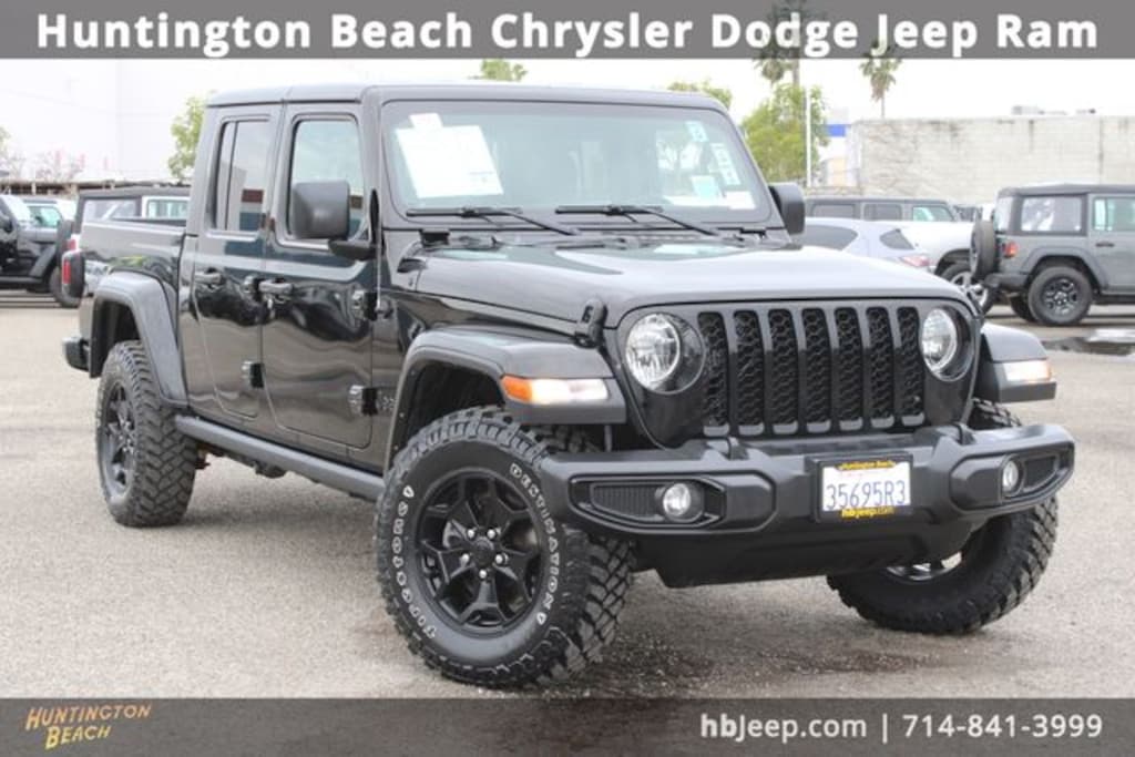 2022 Jeep Gladiator Black Clearcoat 8-Speed Automatic 3.6L V6 24V VVT 2-Door Passive Entry, Front Door Locks, 4-Wheel Drive Decal, 97 MPH Vehicle Max Speed Calibration, Air Conditioning w/Auto Temperature Control, Anti-Spin Differential Rear Axle, Automatic Headlamps, Black Grille, Body Color Fender Flares (2-Piece), Bridgestone Brand Tires, Cluster 7.0" TFT Color Display, Convenience Group, Daytime Running Lamp System, Deep Tint Sunscreen Windows, For More Info, Call 800-643-2112, Front 1-Touch Down Power Windows, Front Heavy Duty Red Accent Shock Absorbers, Leather Wrapped Steering Wheel, Mold In Color Bumper w/Gloss Black, MOPAR All-Weather Slush Mats, Power Heated Mirrors, Power Tailgate Lock, Protection Sill Rails, Quick Order Package 24W Willys, Rear Heavy Duty Red Accent Shock Absorbers, Remote Keyless Entry, Security Alarm, SiriusXM Satellite Radio, Speed Sensitive Power Locks, Sun Visors w/Illuminated Vanity Mirrors, Technology Group, Universal Garage Door Opener, Wheels: 17" x 7.5" Black Aluminum w/Gray Pad, Willys, Willys Hood Decal. Odometer is 29304 miles below market average!