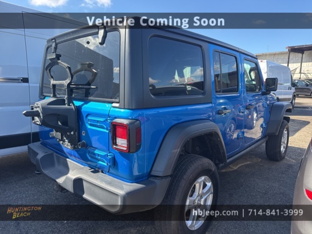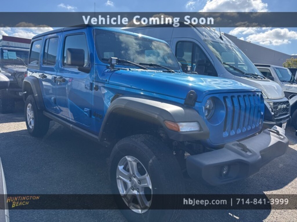 2022 Jeep Wrangler Hydro Blue Pearl Coat 8-Speed Automatic 2.0L I4 DOHC BLUETOOTH WIRELESS / HANDS FREE, BACK UP CAMERA, APPLE CAR PLAY & ANDROID AUTO, 1-Year SiriusXM Guardian Trial, 2-Door Passive Entry, Front Door Locks, 240 Amp Alternator, 4G LTE Wi-Fi Hot Spot, 5-Year SiriusXM Traffic Service, 5-Year SiriusXM Travel Link Service, 7 & 4 Pin Wiring Harness, 700 Amp Maintenance Free Battery, 8.4" Radio & Premium Audio Group, 8.4" Touchscreen Display, Air Conditioning w/Auto Temperature Control, Air Filtering, Alpine Premium Audio System, Auto-Dimming Rear-View Mirror, Automatic Headlamps, Auxiliary Switches, Class II Receiver Hitch, Cluster 7.0" TFT Color Display, Cold Weather Group, Convenience Group, Deep Tint Sunscreen Windows, Emergency/Assistance Call, Front 1-Touch Down Power Windows, GPS Navigation, HD Radio, Heated Front Seats, Heated Steering Wheel, Leather Wrapped Steering Wheel, Off-Road Info Pages, Power Heated Mirrors, Quick Order Package 22S Sport S, Radio: Uconnect 4C Nav w/8.4" Display, Remote Keyless Entry, Security Alarm, SiriusXM Satellite Radio, SiriusXM Traffic Plus, SiriusXM Travel Link, Speed Sensitive Power Locks, Sport S, Sun Visors w/Illuminated Vanity Mirrors, Technology Group, Trailer Tow & HD Electrical Group, Universal Garage Door Opener, Wheels: 17" x 7.5" Tech Silver Aluminum.