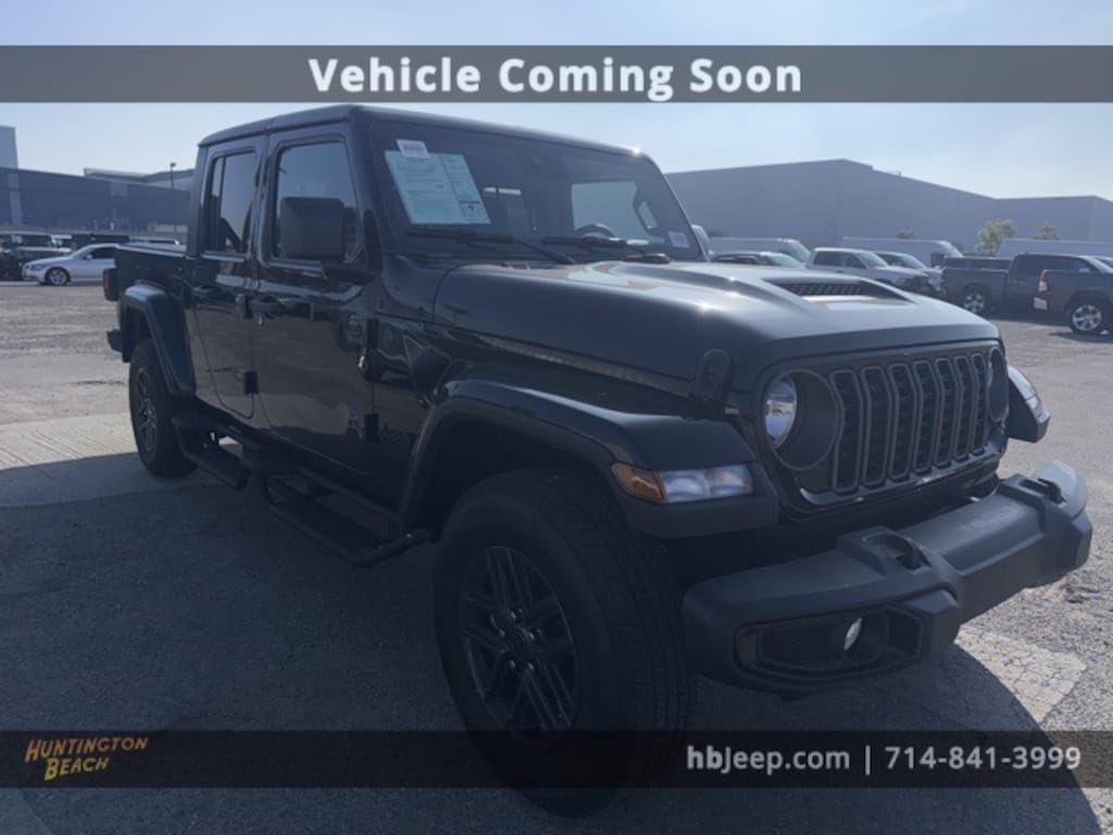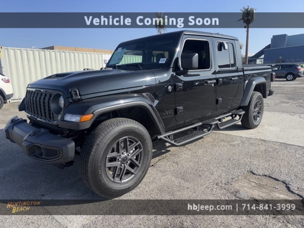 2025 Jeep Gladiator Black Clearcoat 8-Speed Automatic 3.6L V6 24V VVT BLUETOOTH WIRELESS / HANDS FREE, BACK UP CAMERA, Dark Sky Appearance Package, Performance Hood Premium Front Bumper with Glossâ"Black Accents Bodyâ"Color Fender Flares Daytime Running Lamp System, Advanced Brake Assist, Automatic Headlamps, Black 3-Piece Hard Top, Body Color Fender Flares (2-Piece), Dark Sky Appearance Package, Daytime Running Lamp System, Deep Tint Sunscreen Windows, Enhanced Adaptive Cruise Control, Freedom Panel Storage Bag, Full Speed Forward Collision Warning Plus, Mold In Color Bumper w/Gloss Black, Normal Duty Plus Suspension, Performance Hood, Power Heated Mirrors, Premium Wrapped Steering Wheel, Quick Order Package 24S Sport S, Rear Sliding Window, Rear Window Defroster, Security Alarm, Sun Visors w/Illuminated Vanity Mirrors, Wheels: 17" x 7.5" Gray.