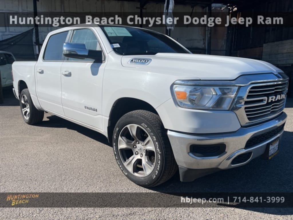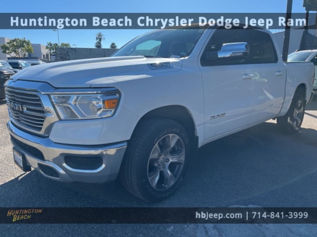 2024 Ram 1500 Bright White Clearcoat 8-Speed Automatic HEMI 5.7L V8 Multi Displacement VVT eTorque BLUETOOTH WIRELESS / HANDS FREE, LEATHER, APPLE CAR PLAY & ANDROID AUTO, GPS Navigation, Navigation System, Quick Order Package 27H Laramie. Odometer is 1989 miles below market average!